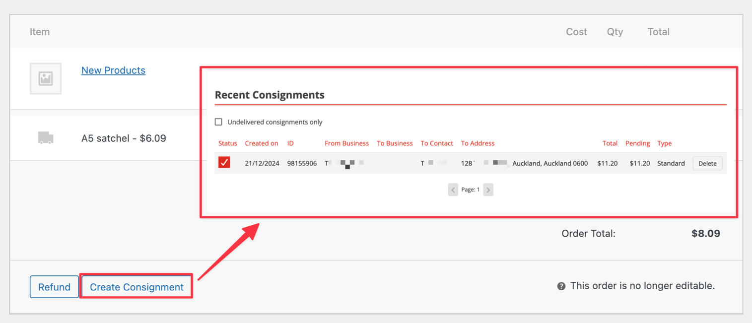 5. Create Consignments Directly from the WooCommerce Order Page.